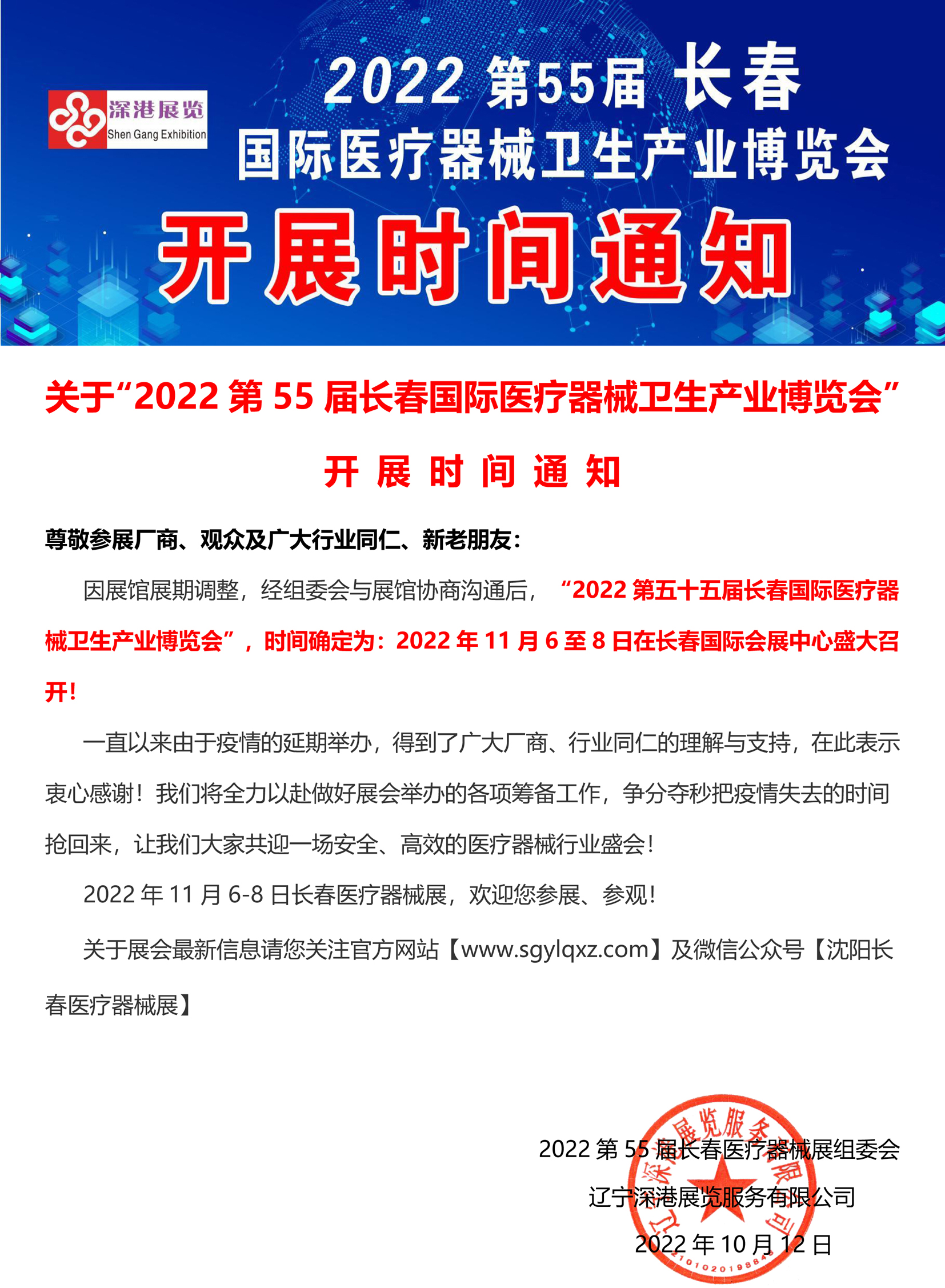 | 關于“2022第55屆長春國際醫(yī)療器械衛(wèi)生產業(yè)博覽會”開展時間通知 | |